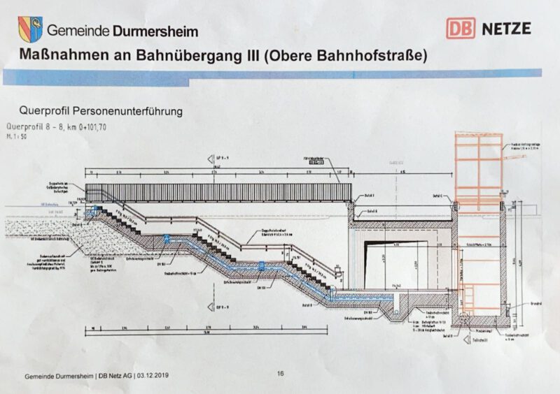 Hauptthema war der Tagesordnungspunkt „Stellungnahme der Gemeinde zum Planfeststellungsverfahren Umbau Bahnhof Durmersheim“. Hier sieht die aktuelle Planung leider lediglich eine Unterführung für Fußgänger vor, in der Fahrräder nur geschoben werden dürfen. Das ist so, weil der Gemeinderat in der Sitzung vom 16.10.2013 eine Variante Geh- und Radwegunterführung mit 6 m Breite mehrheitlich abgelehnt und in der Sitzung am 18.12.2019 den jetzigen Planentwurf mit einer Breite von 4 m, also als reine Fußgängerunterführung, mehrheitlich gebilligt hat. Die einzige Fraktion, die in beiden Sitzungen für eine Radunterführung (für die bereits eine fertige Planung vorlag) gekämpft hat, war die BuG. Sie erntete damals heftige Kritik und Angriffe der anderen Fraktionen. Dieser Sachverhalt wurde von unserem Fraktionsvorsitzenden der BuG Rolf Enderle in der Gemeinderatssitzung ausführlich geschildert, und er hat das Abstimmungsverhalten des Gemeinderats anhand eines Protokolls der Sitzung vom 18.12.2019 belegt. Es ist schon erstaunlich, dass die anderen Fraktionen sich nun auf einmal auch für eine Radunterführung stark machen, aber wahrscheinlich kommt dieser Sinneswandel zu spät. Trotzdem ist es natürlich einen Versuch wert, in der Stellungnahme der Gemeinde nun wieder eine radfahrertaugliche Unterführung zu fordern, und schön, dass der Gemeinderat unserem Formulierungsvorschlag zugestimmt hat. Die Darstellung des BT zu diesem Sachverhalt ist übrigens falsch, wir haben dem BT eine Gegendarstellung zugestellt.